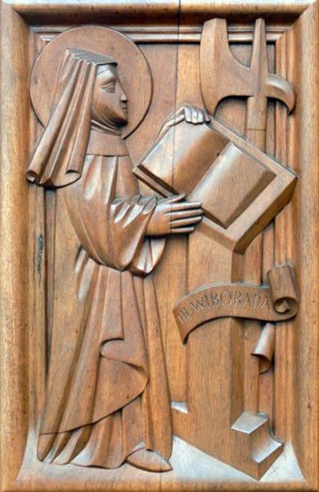 En la Europa feudal del Norte (siglo X) vivió una mujer eremita, visionaria y santa, que gozó de gran popularidad en los cantones suizos. Rechazó el papel tradicional asignado a la mujer de su época. Era humilde, pero sostenía con firmeza la convicción de su fe. Vivió entregada al servicio de los más necesitados, a los que ofrecía alimentos, consuelo e incluso asistencia médica. Cuando se enclaustró en el monasterio de San Galo se dedicó a aconsejar a aquellos que iban a verla, a la oración y al trabajo ornamental de los códices y manuscritos de la biblioteca del monasterio. Gracias a sus dotes visionarias pudo alertar a los monjes del monasterio sobre la invasión húngara, lo que les permitió ponerse a salvo junto con la rica biblioteca que poseían. Por eso en estas regiones es venerada como patrona de los bibliotecarios.